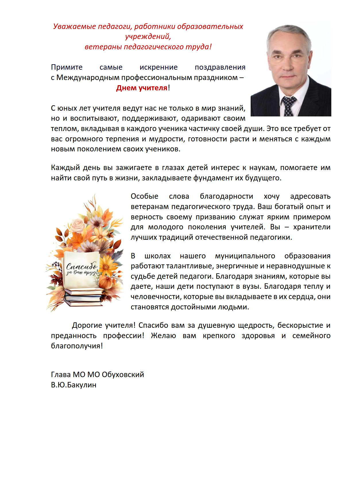 Уважаемые педагоги, работники образовательных учреждений, ветераны педагогического труда! Опубликовано 04.10.2025 в рубрике Новости