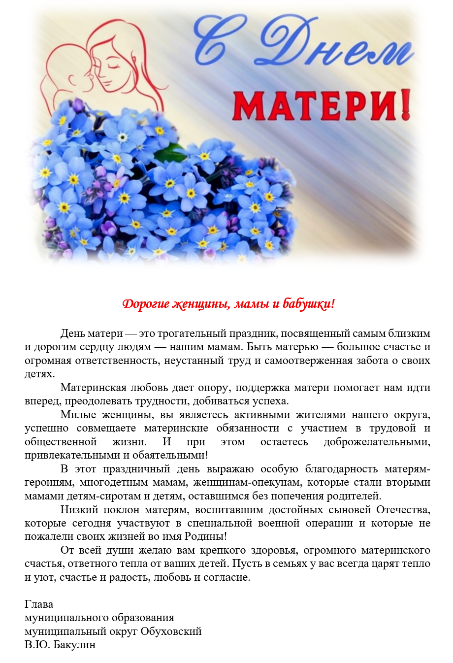 Дорогие жительницы Невского района, примите мои сердечные поздравления с Днём матери!